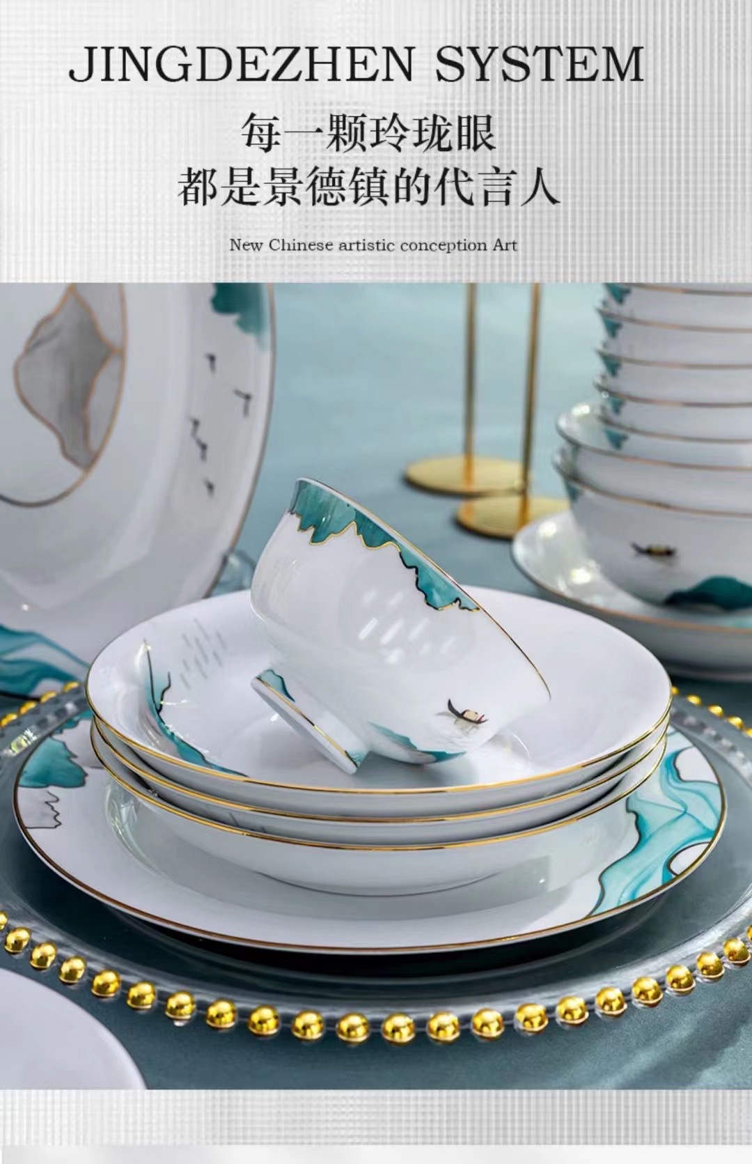 “望川”新中式陶瓷餐具套装