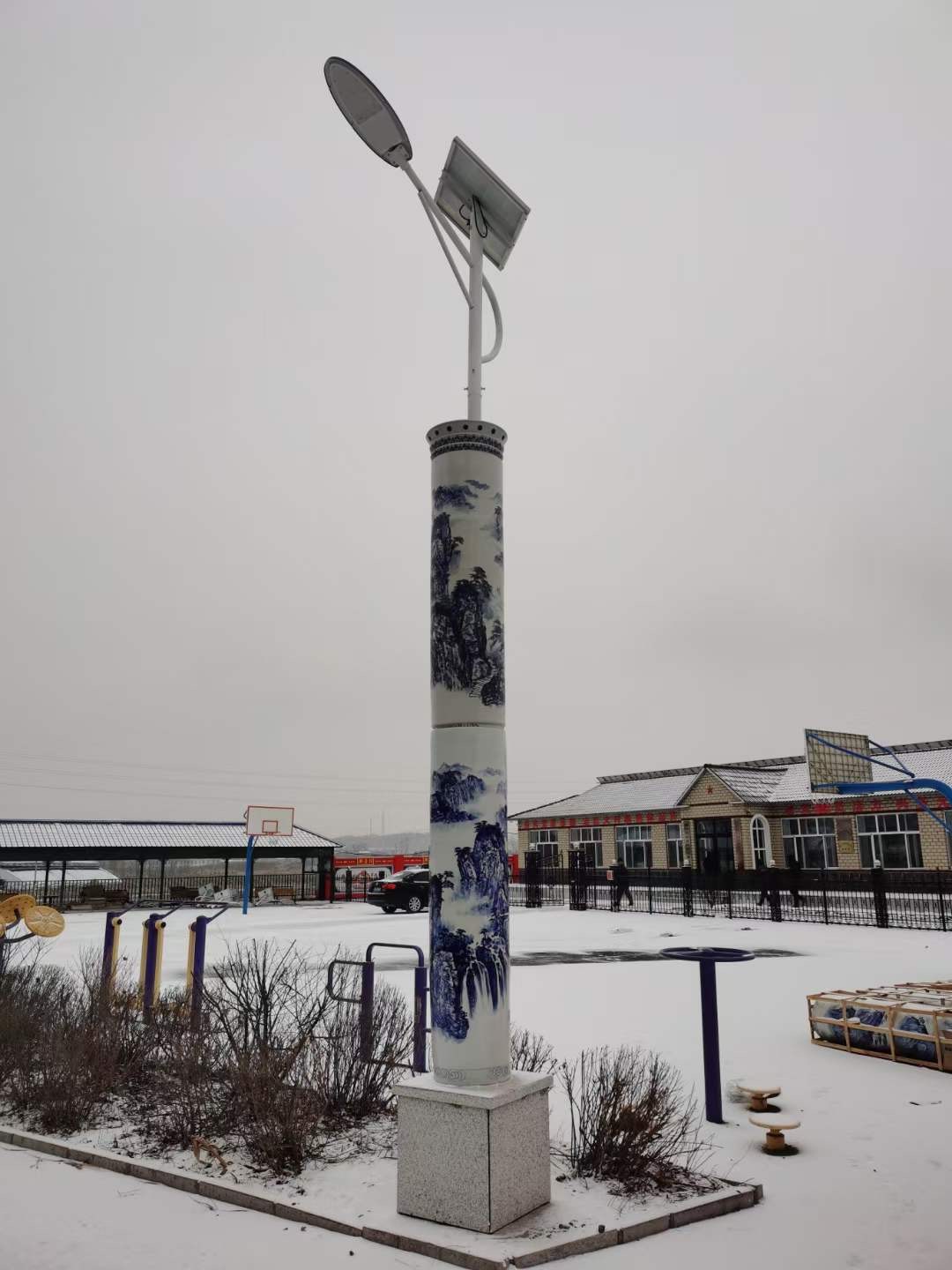 陶瓷灯柱的配置,如下:高1.9米,直径0.45米,每根两节,一套两根,陶瓷灯柱画面主要以山水画为主,每一节下面打一个洞,写景德镇制,由于顾客不知道怎么安装,所以派了专业人员去指导安装,本次的运费也91免费版污下载这边出的。来看看产品: